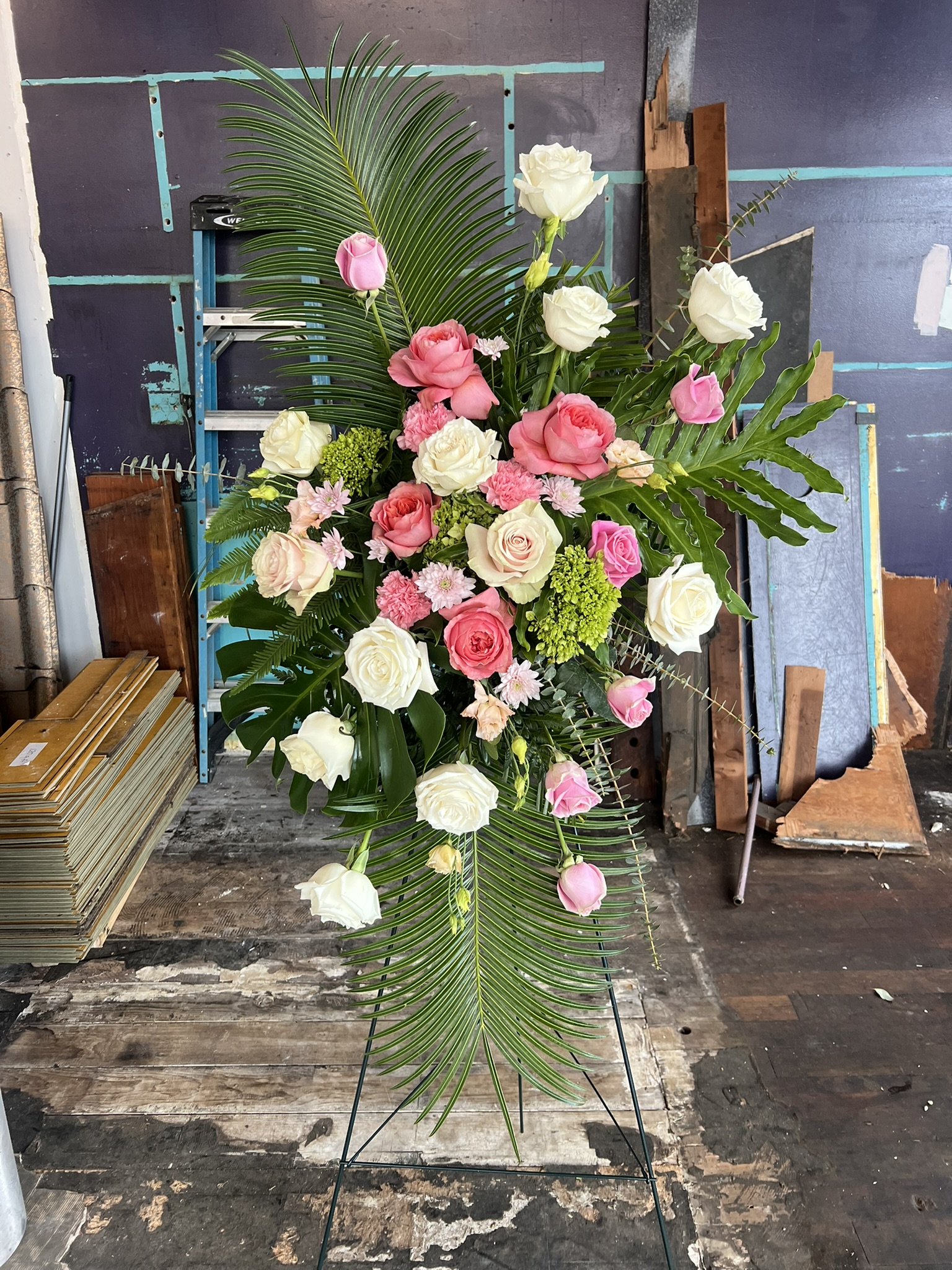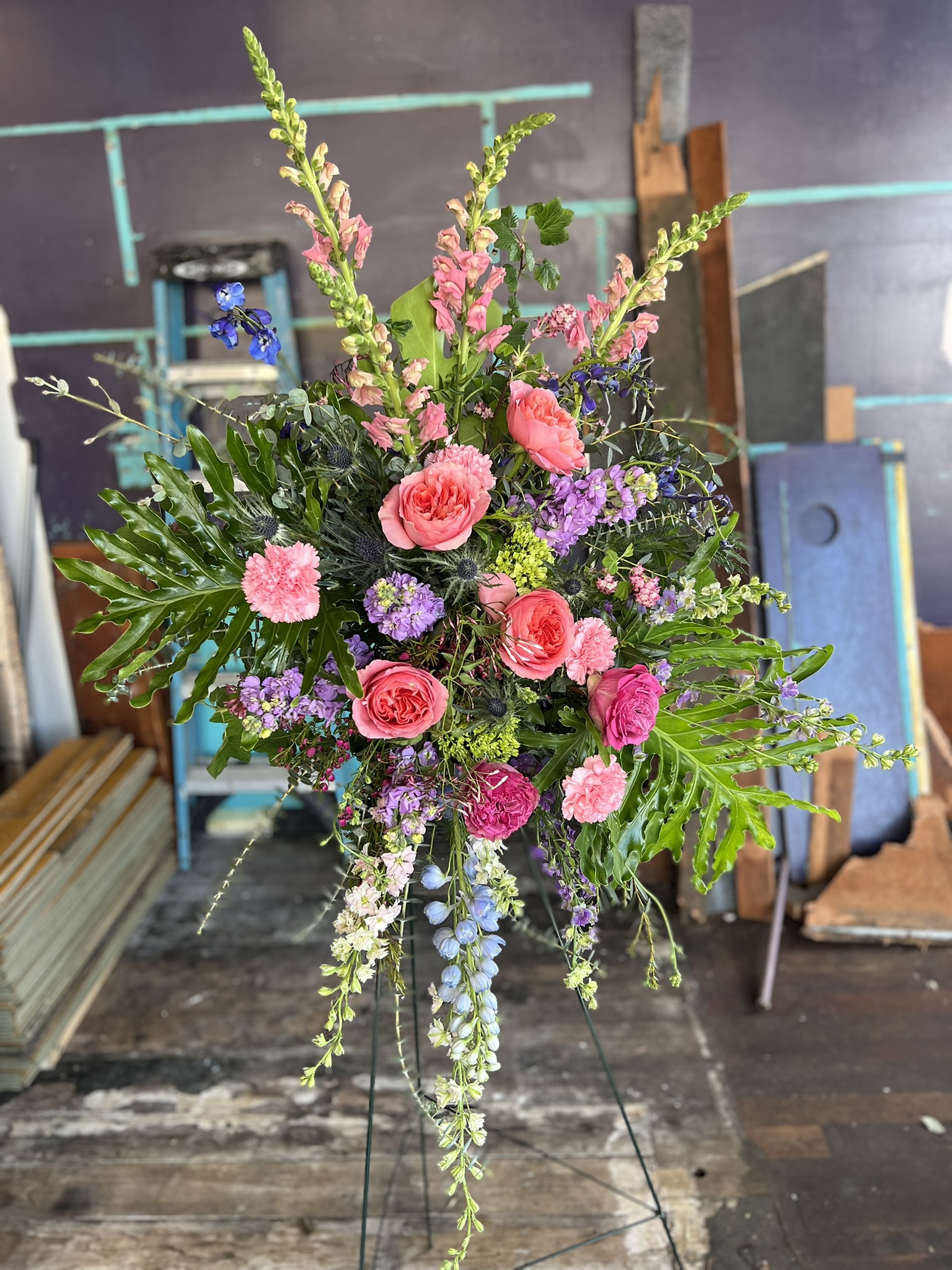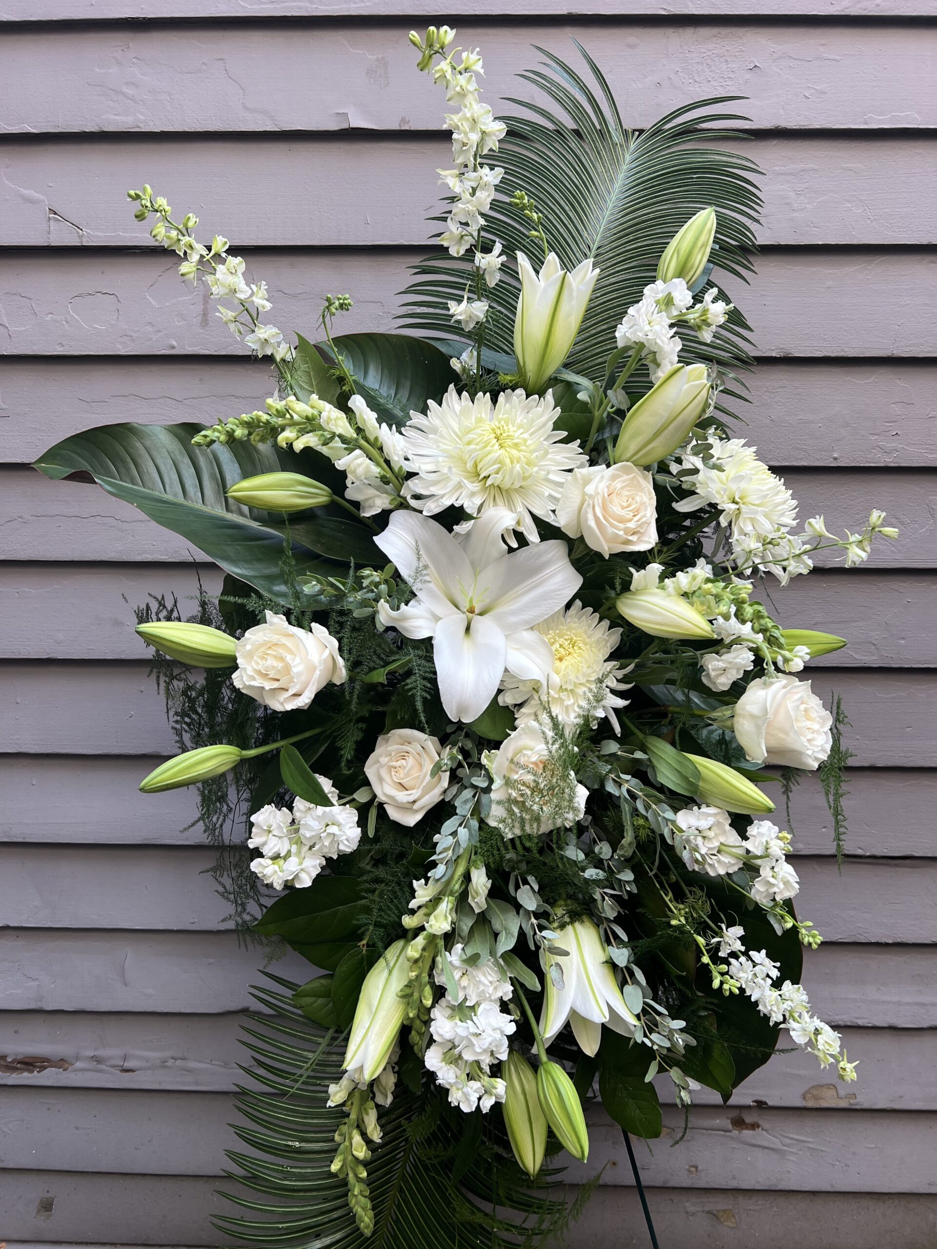 Our memorial displays offer comfort and connection through an artful selection of blooms that honor and reflect the personality of the departed. You may choose between a la carte selections and custom designs with choices of color palettes, symbolic blooms, and personalized details.