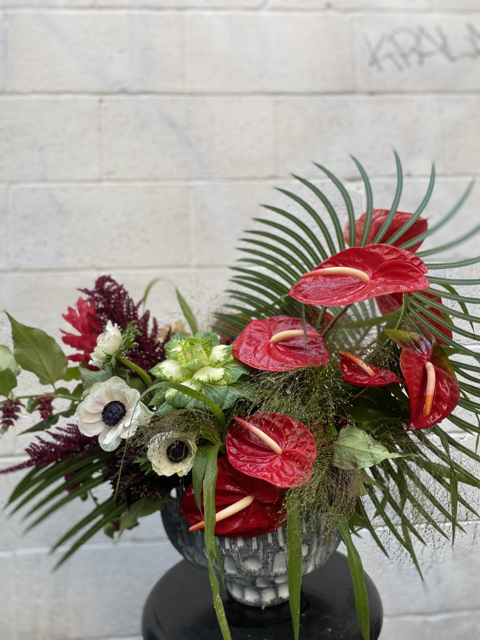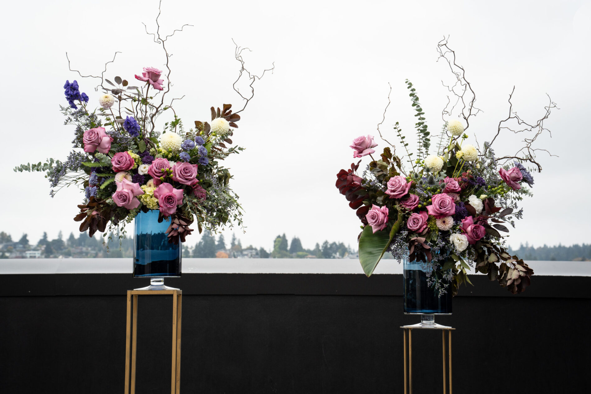 Command the gaze of your guests with immaculate Stage Displays. Placed atop pedestals, or suited in ground vases, a singular or set of stage arrangements is the period at the end of a strong sentence. Whether beside a podium or flanking a special pair, these arrangements work to elevate an event in style and substance. Designed with your brand, color palette, vibe and style in mind, each arrangement is created with the height of thoughtfulness and craftsmanship. These arrangements are available to be designed in rental vases, so please indicate your wish for a rental container at checkout, and we will correspond about this element.