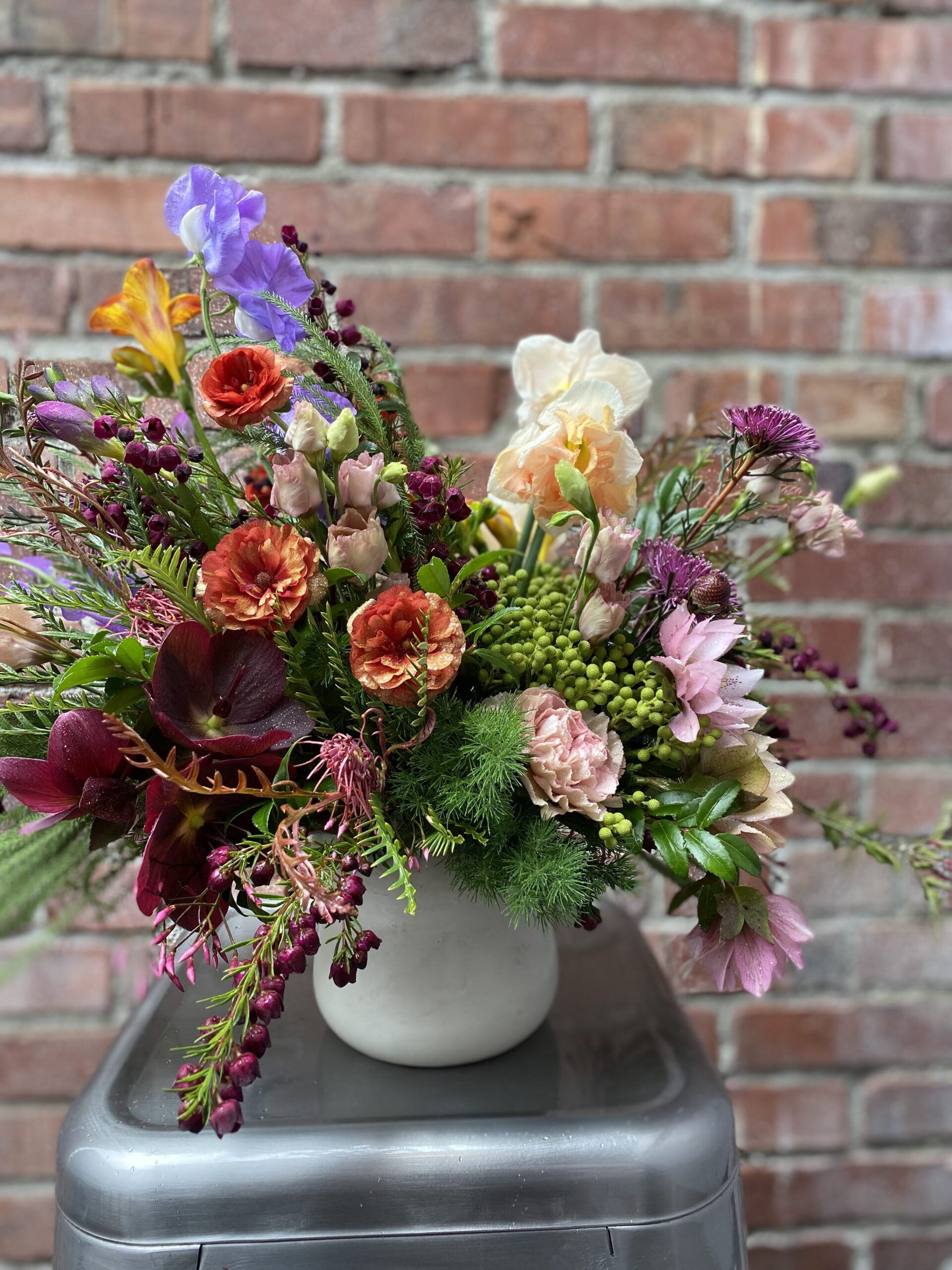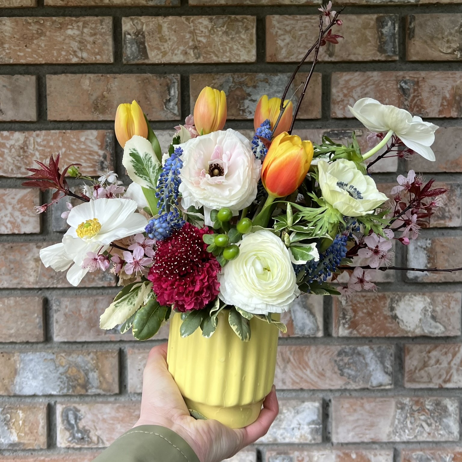 Celebrate the arrival of the season with The Spring, a fresh and bright arrangement designed to capture the feeling of longer days and new beginnings. Filled with seasonal locally sourced flowers in cheerful tones, this bouquet brings together delicate textures and vibrant pops of color for a look that feels both joyful and effortlessly refined. Inspired by garden mornings and the first signs of the season in bloom, it’s a perfect way to brighten your home or share a thoughtful, uplifting gift.